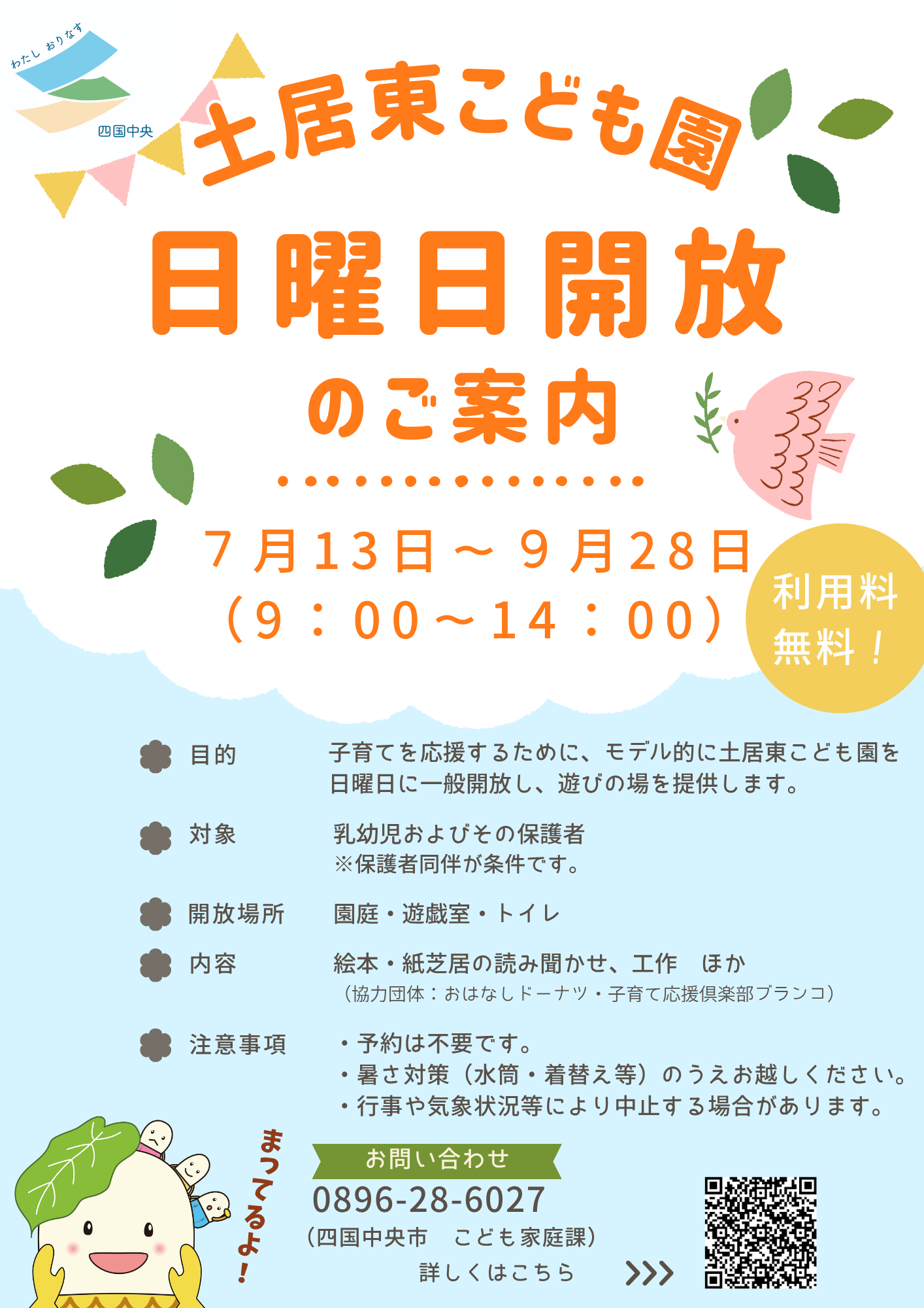「土居東こども園」を子どもの遊びの場として日曜日に開放しています(※終了しました)