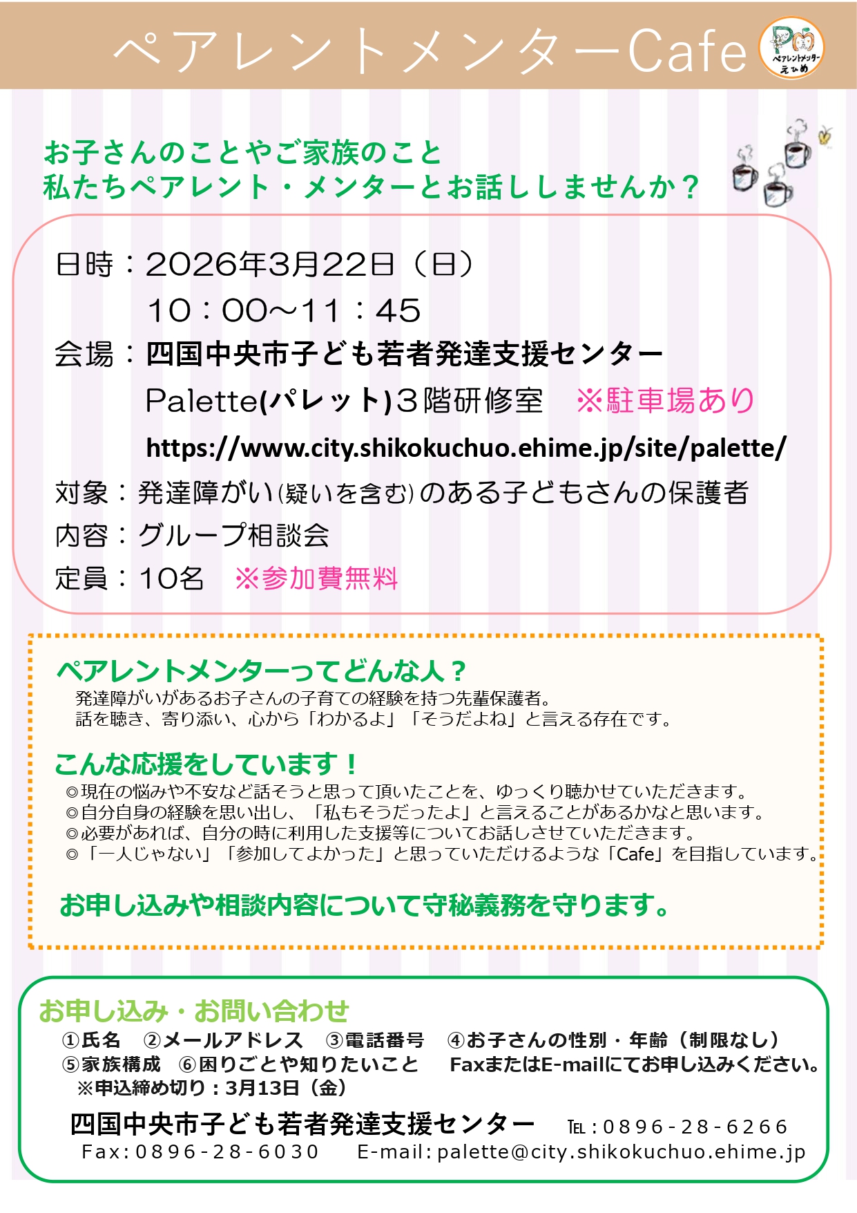 令和7年度ペアレントメンターCafeを開催します(無料)